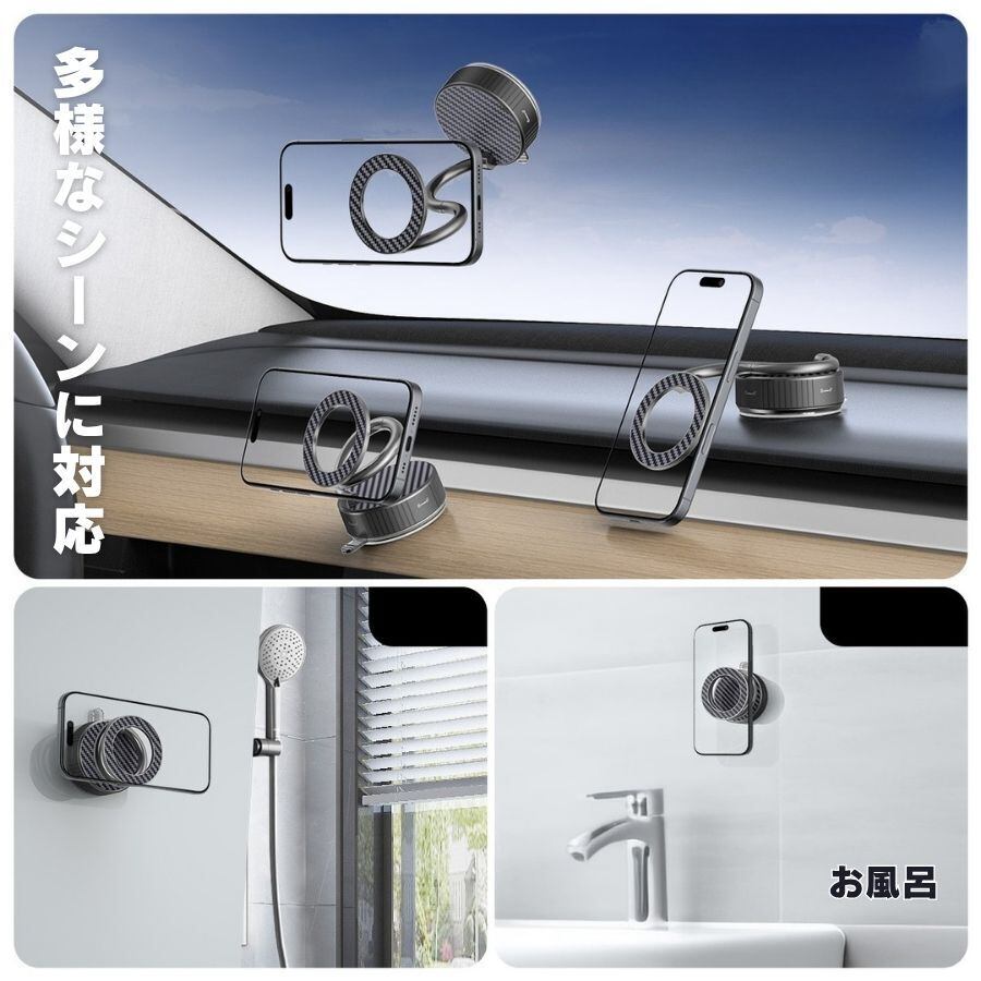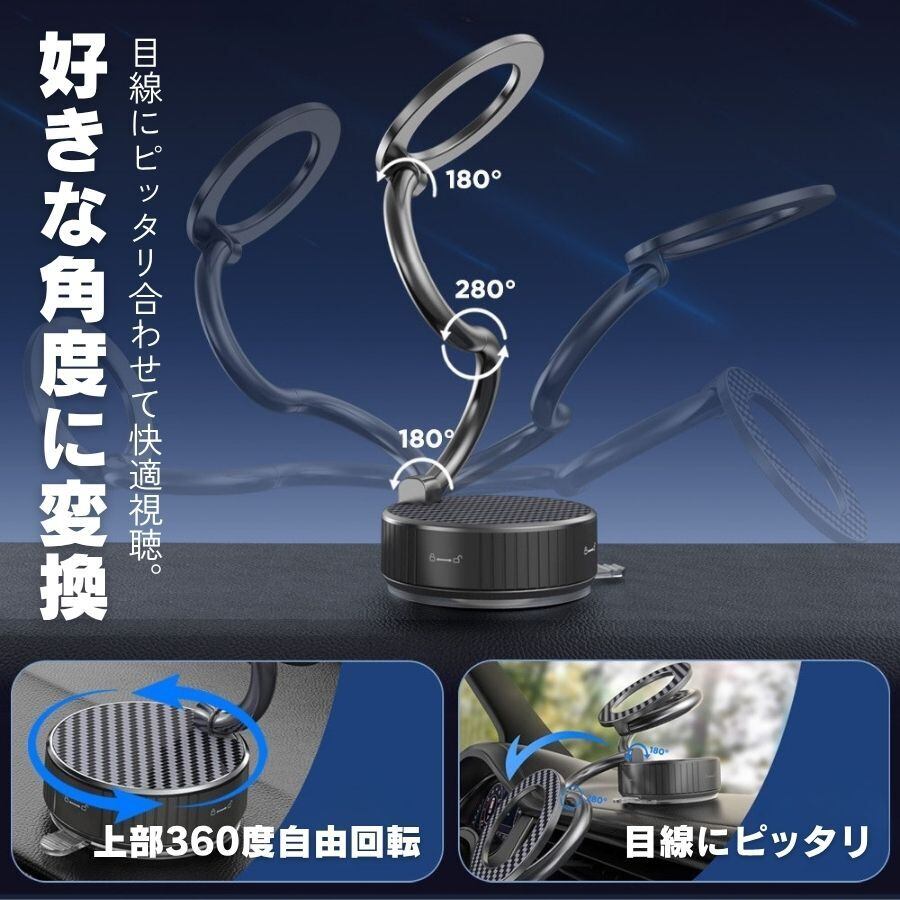 スマホホルダー 車 マグネット 真空 吸盤 360度回転 自由調整 スマホスタンド 車載ホルダー 車用スマホホルダー iPhone Galaxy Android Magsafe スマホホルダー 携帯スタンド 強い磁気