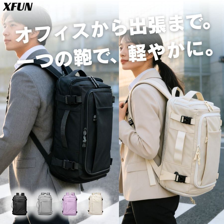 【拡張式収納】 日常の通勤から出張まで、一つのバッグで対応できる柔軟性。必要な時だけ容量を増やせます。