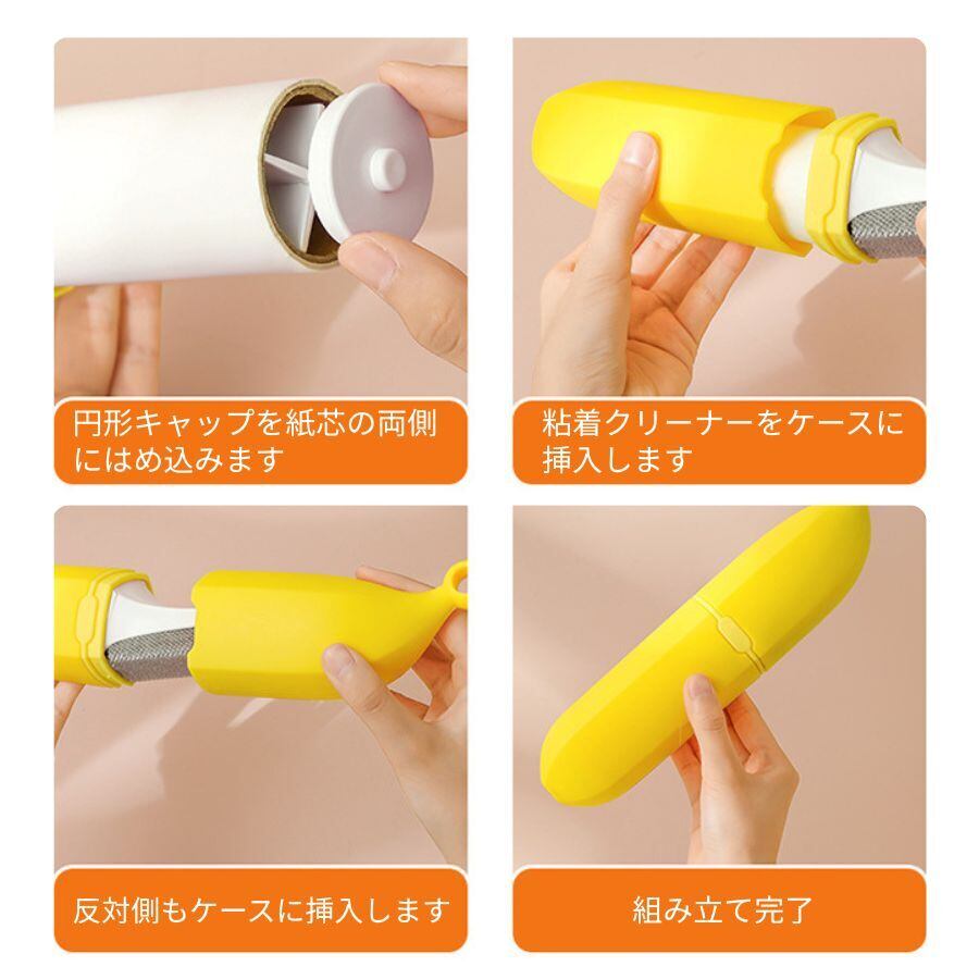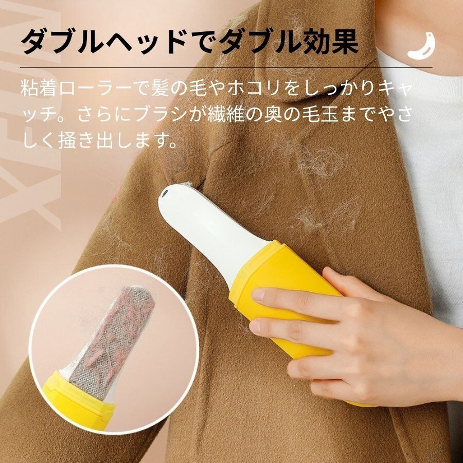 バナナ型クリーナー 多機能 掃除ブラシ ホコリ取り 粘着ローラー ブラシ 2in1 強力粘着紙 洋服 ソファ カーペット 車内 掃除 ペットの毛取り 毛玉取り おしゃれ ギフト 母の日 プレゼント にも 便利グッズ 収納ケース付き