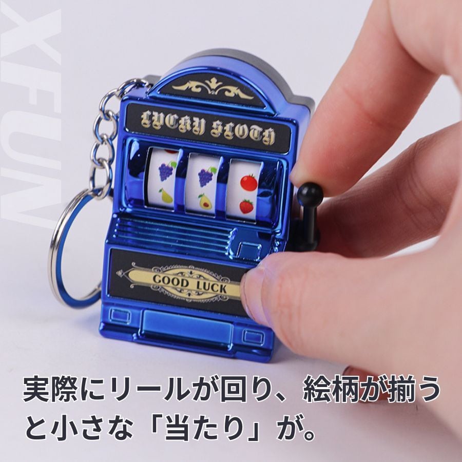 XFUN ラッキー キーホルダー ミニチュア スロットマシーン キーホルダー レトロ カジノ風 ストレス解消 おもちゃ 運試し ギフト プチギフト 縁起物 男性 女性 全6色