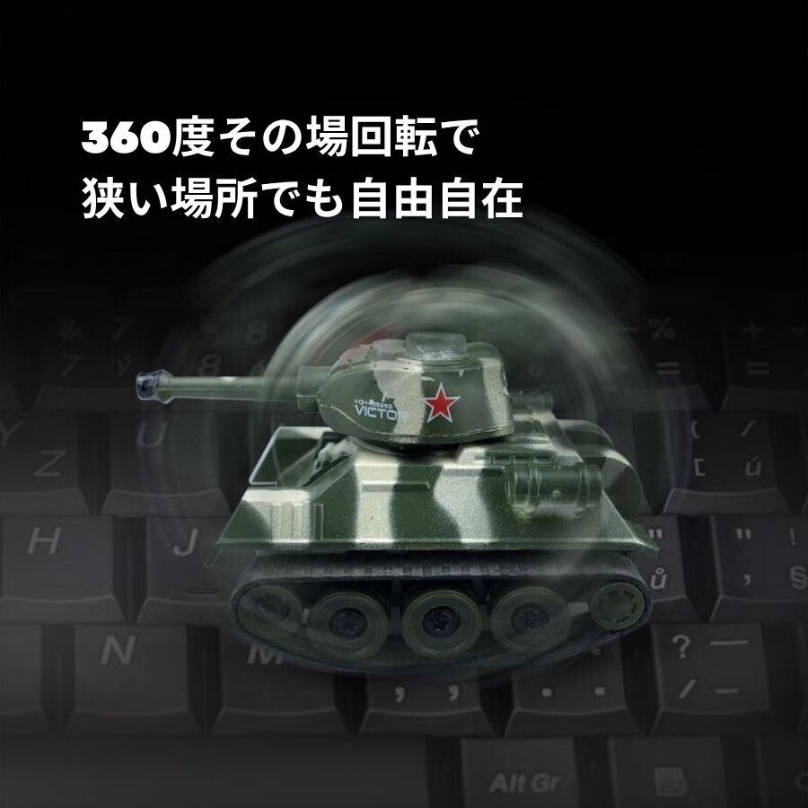 ミニラジコン戦車 手のひらサイズ 2.4GHz 360度回転 キャタピラ駆動 リアル迷彩 USB充電 収納ケース一体型リモコン 子供向け ラジコンタンク
