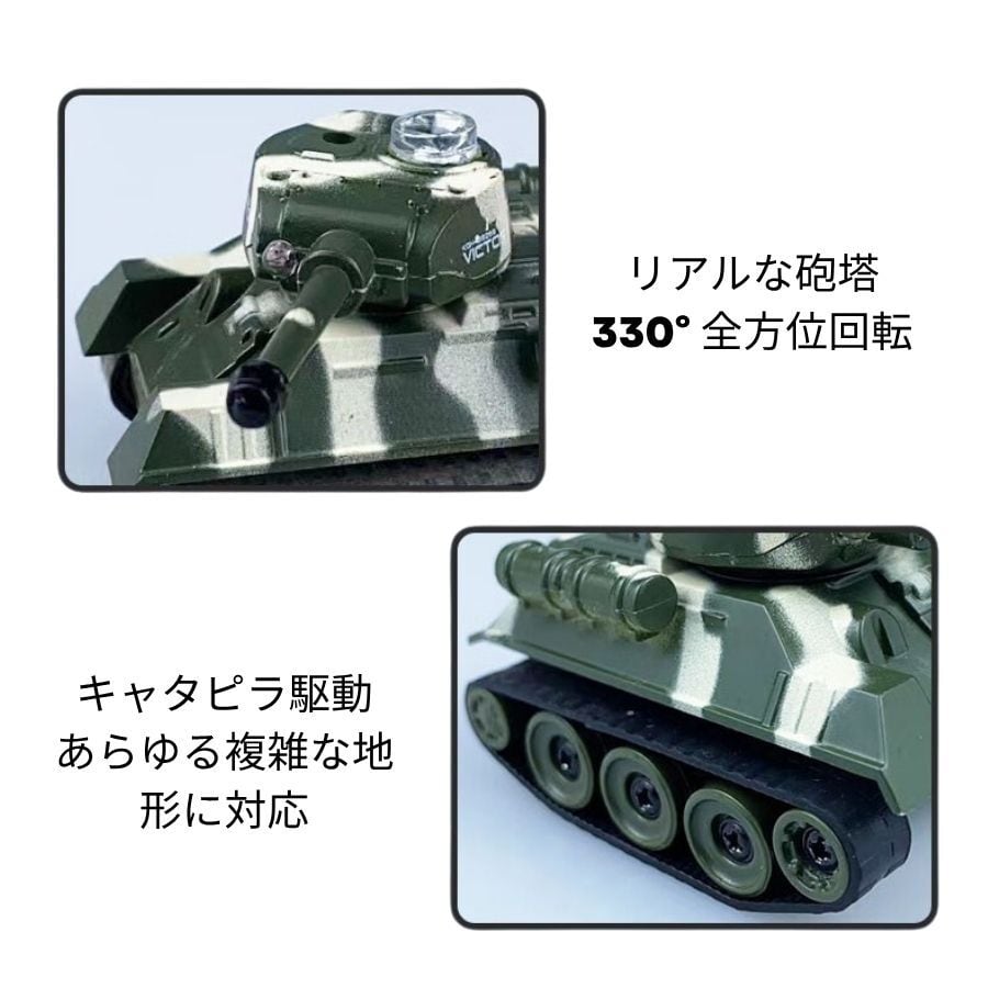 【リアルな機能とディテール】 砲塔は330度回転。キャタピラ駆動で凹凸路や走行音もリアル。サウンド機能付きで戦場の臨場感が味わえます。